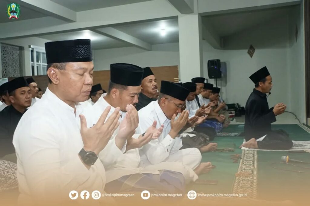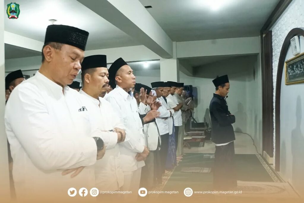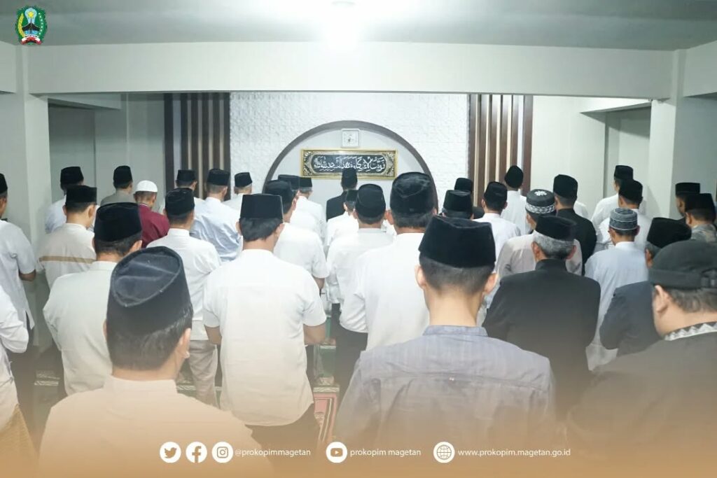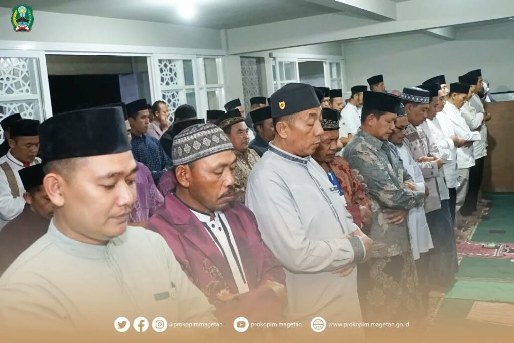 Turut hadir dalam kegiatan ini , Pj Bupati Magetan Nizhamul, Forkopimda, Kepala OPD dan Camat Eks Kecamatan Distrik Magetan diawali dengan shalat isya berjamaah dan dilanjutkan shalat tarawih.