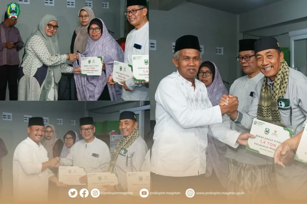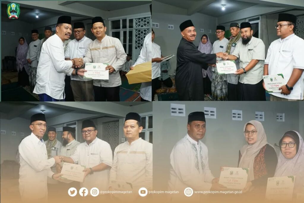 Dalam kesempatan tersebut Pj Bupati Nizhamul juga memberikan tali asih berupa alat shalat & Al-Qur an secara simbolis kepada takmir masjid, dan beras zakat Baznas Magetan kepada Camat eks distrik Magetan oleh Forkopimda Magetan.(Prokopim/adm/ahm)