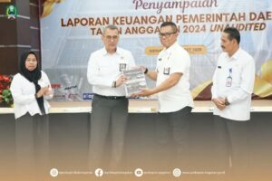 Pj Bupati Magetan Nizhamul, menyerahkan Laporan Keuangan Pemerintah Daerah (LKPD) Unaudited Tahun Anggaran 2024 kepada Kepala Perwakilan Badan Pemeriksa Keuangan (BPK) Jawa Timur, bertempat di Kantor BPK Perwakilan Jawa Timur
