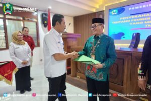 Sedikitnya 65 aparatur sipil negara (ASN) di lingkungan kerja Pemkab Magetan, memasuki masa pensiun. Hal ini ditandai dengan penyerahan SK pensiun kepada 65 ASN oleh Pj. Sekdakab Magetan Winarto secara