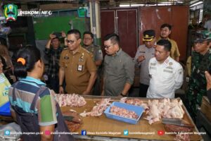 Sobatkom… Guna menjaga kestabilan harga kebutuhan bahan pokok dan ketersedian stok bahan pangan jelang Ramadhan, Forkopimda Magetan melaksanakan sidak di Pasar Kawedanan, Pasar Maospati dan Agen Gas elpiji yang ada