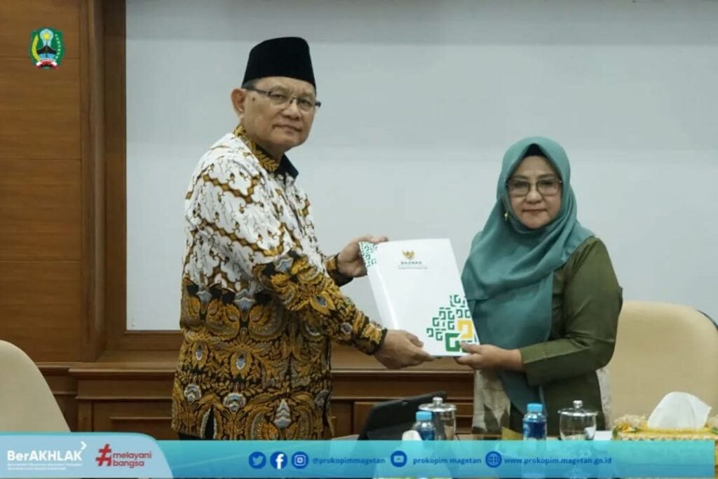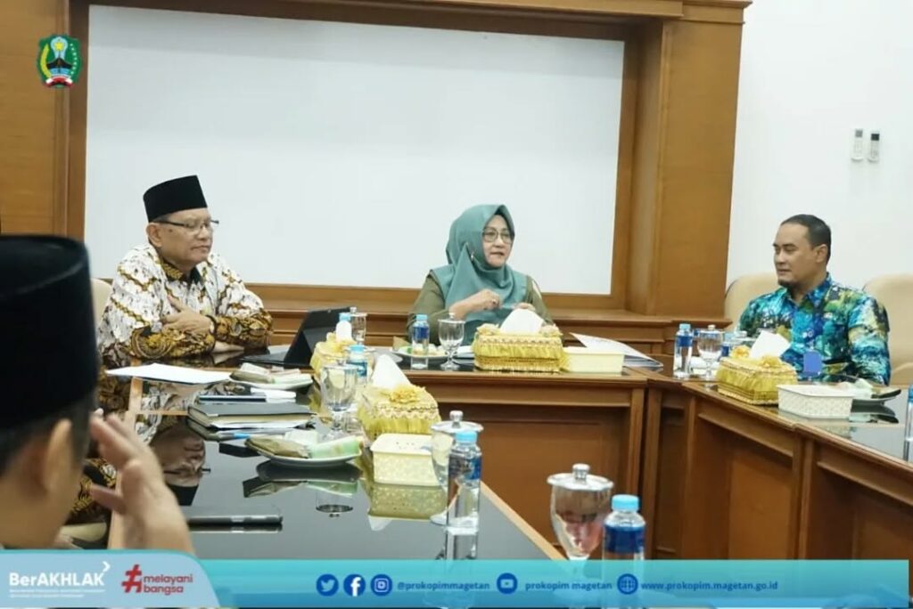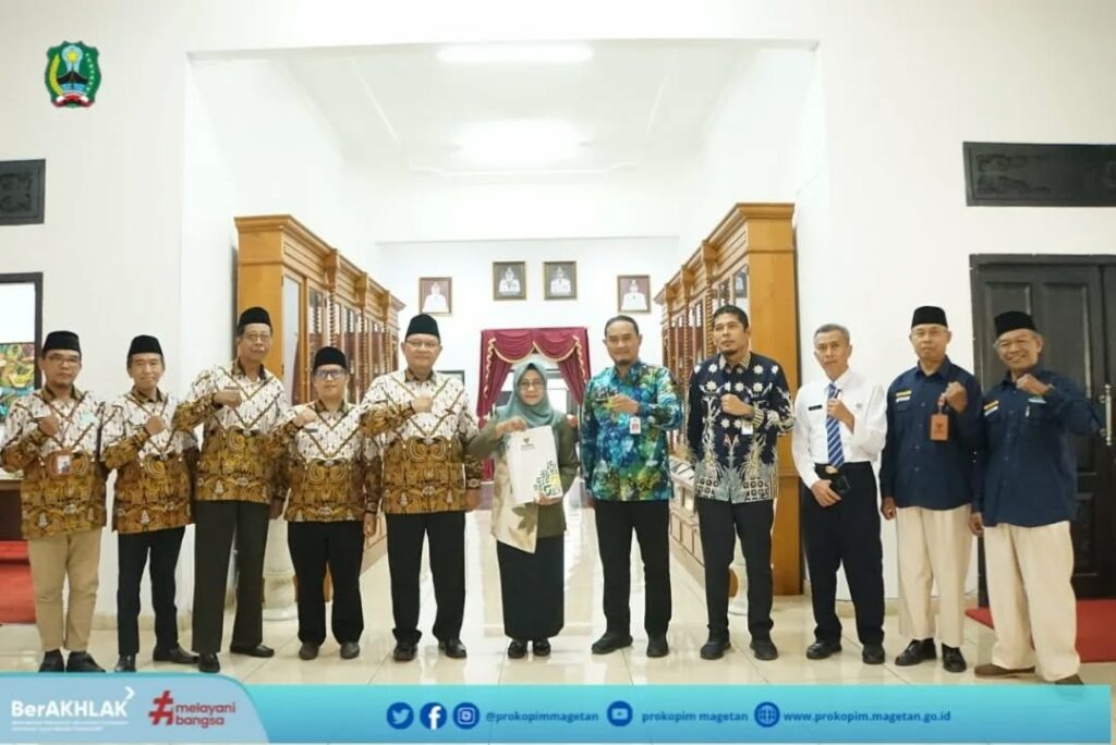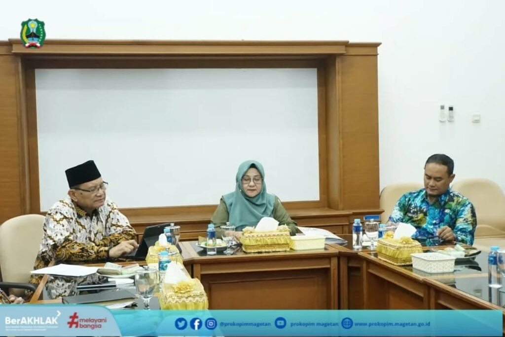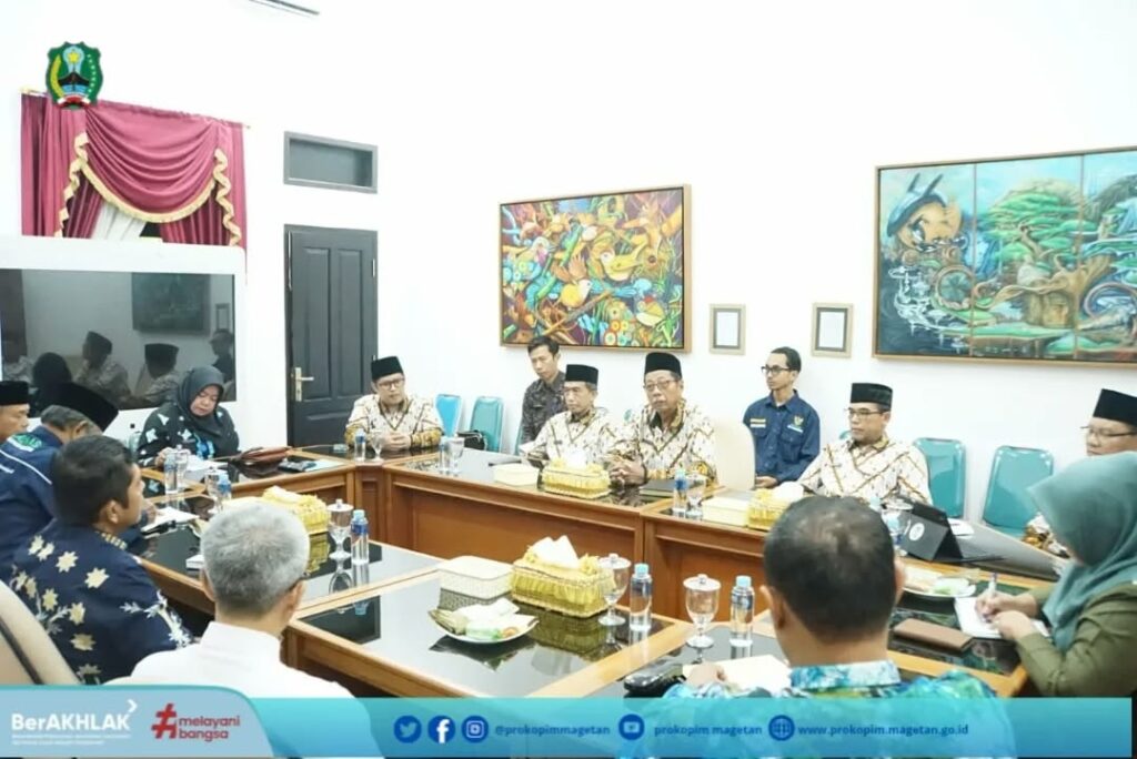 Bupati Magetan Nanik Endang Rusminiarti menerima audiensi dengan Badan Amil Zakat Nasional (BAZNAS) Magetan, guna bersilaturahmi dengan para pengurus serta penyampaian terkait evaluasi dan efektivitas Instruksi Bupati tentang optimalisasi pengumpulan zakat, infaq, dan shodaqoh di perangkat daerah, instansi vertikal, dan BUMD, bertempat di Ruang Rapat Pendapa Surya Graha, Kamis (19/06/2025).