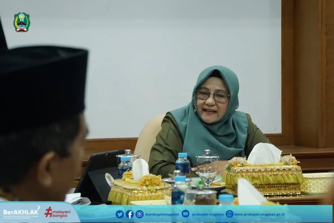 Bupati Magetan Nanik Endang Rusminiarti menerima audiensi dengan Badan Amil Zakat Nasional (BAZNAS) Magetan, guna bersilaturahmi dengan para pengurus serta penyampaian terkait evaluasi dan efektivitas Instruksi Bupati tentang optimalisasi pengumpulan zakat, infaq, dan shodaqoh di perangkat daerah, instansi vertikal, dan BUMD, bertempat di Ruang Rapat Pendapa Surya Graha, Kamis (19/06/2025).
