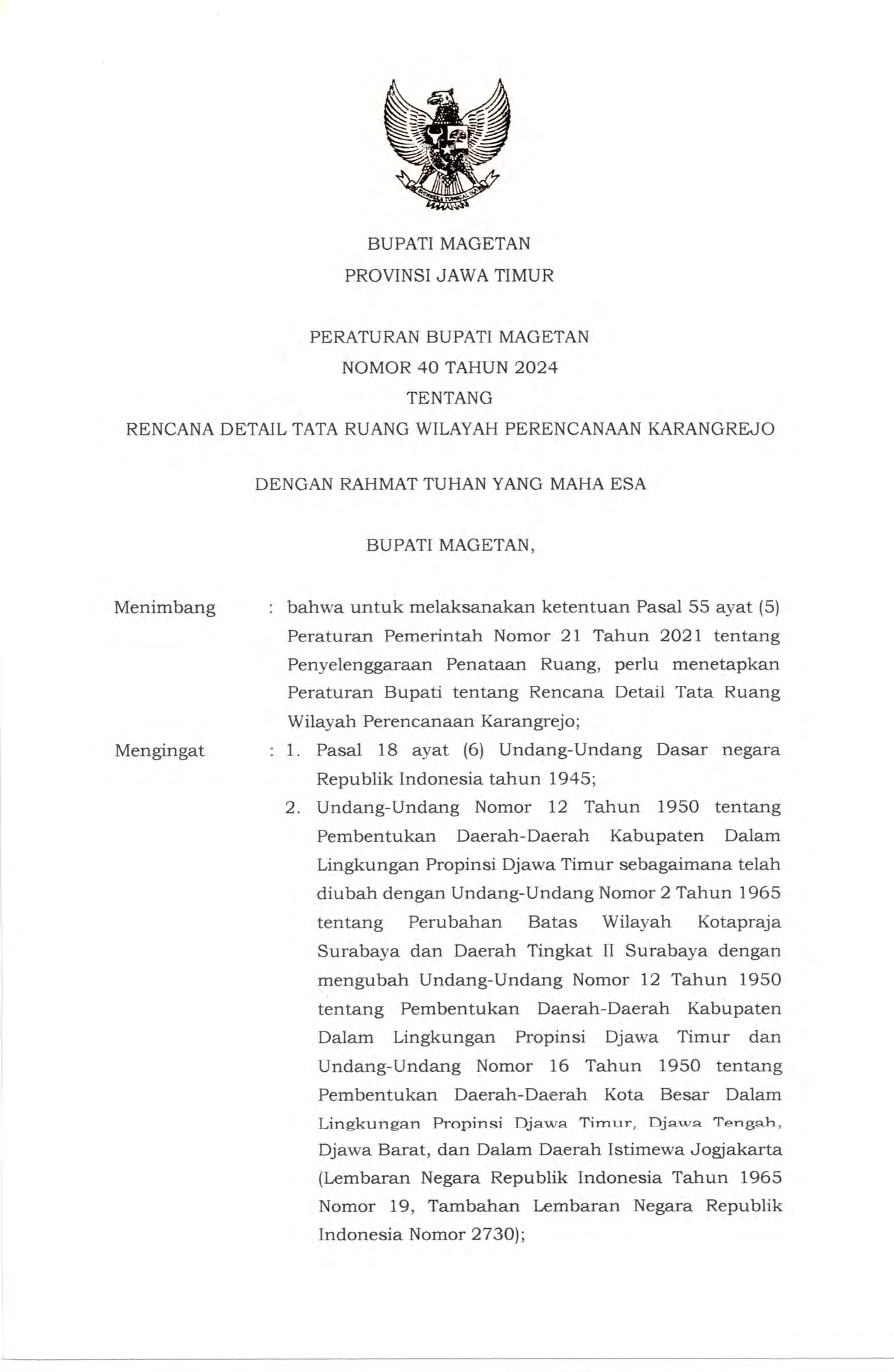 Perbup No 40 RDTR WP Karangrejo Tahun 2024