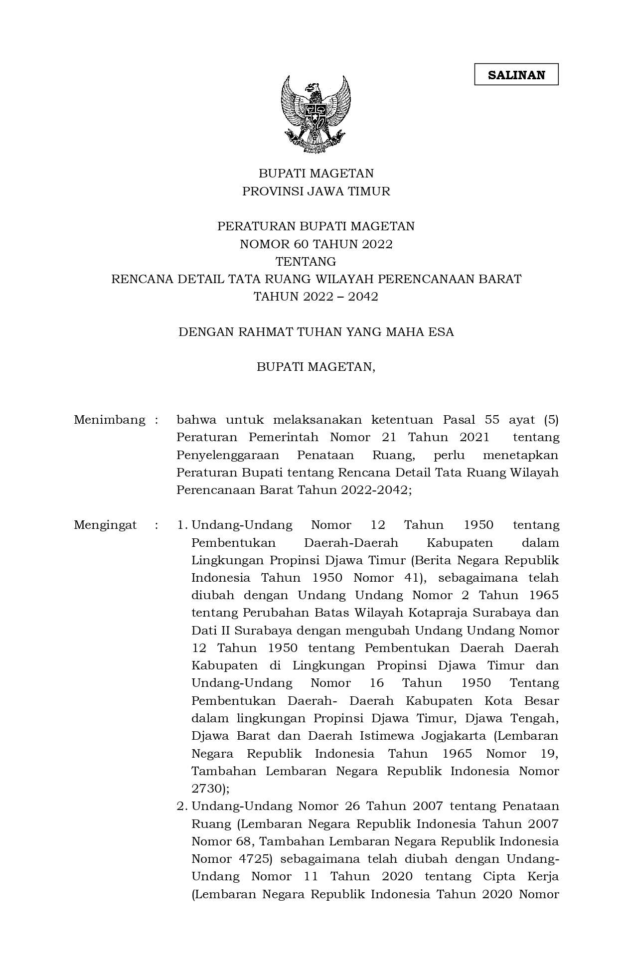PERBUP Nomor 33 Tahun 2021 tentang Rencana Detil Tata Ruang Magetan