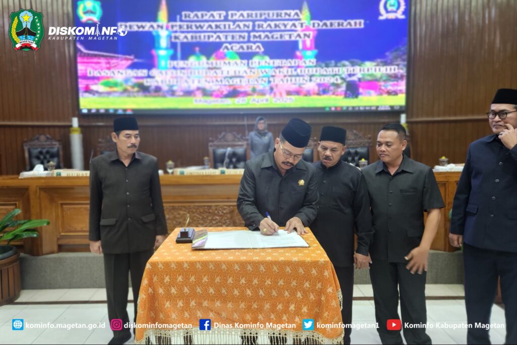 Berdasarkan surat keputusan Komisi Pemilihan Umum (KPU) Kabupaten Magetan, pada Rapat Paripurna DPRD malam ini DPRD Kab. Magetan mengumumkan penetapan pasangan calon Bupati dan Wakil Bupati terpilih Kabupaten Magetan tahun 2024, Senin (28/4).