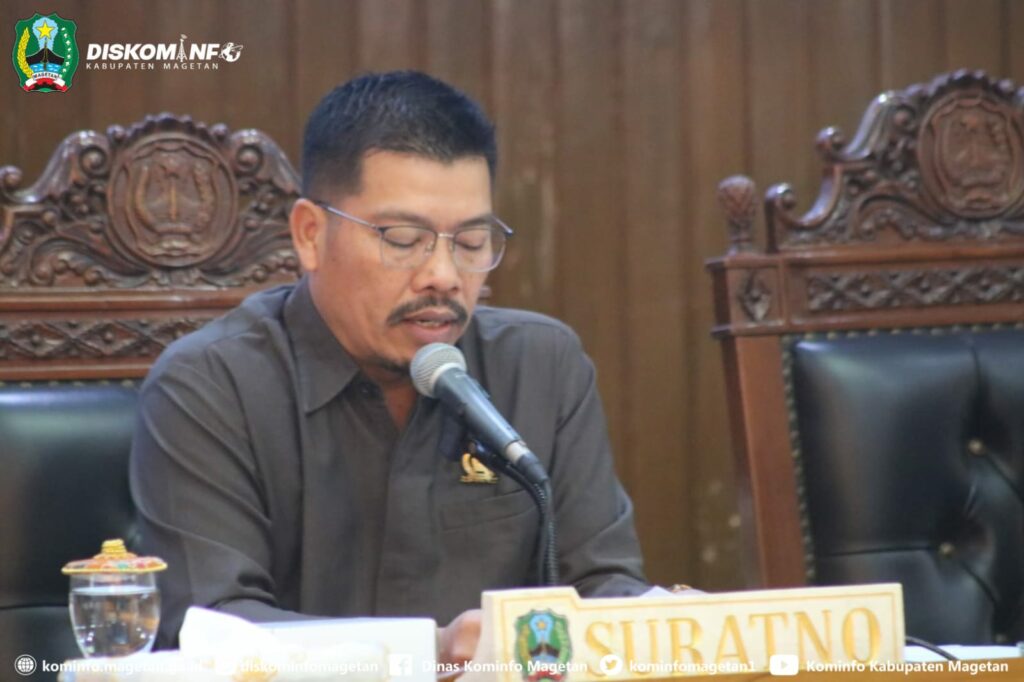 Ketua DPRD Kabupaten Magetan, Suratno, dalam sambutannya menyampaikan bahwa rapat paripurna ini merupakan bagian dari mekanisme pembahasan Raperda Laporan Pertanggungjawaban Pelaksanaan APBD Tahun Anggaran 2024. “Melalui agenda ini, fraksi-fraksi di DPRD menyampaikan sikap, catatan, dan masukan terhadap pelaksanaan anggaran yang telah berjalan, sebagai bentuk fungsi pengawasan yang melekat pada lembaga legislatif,” jelasnya.