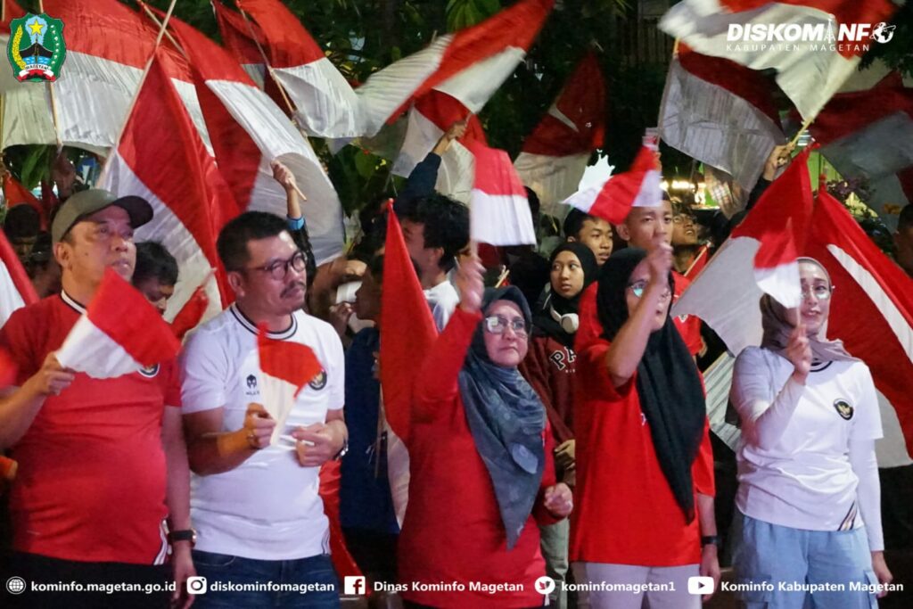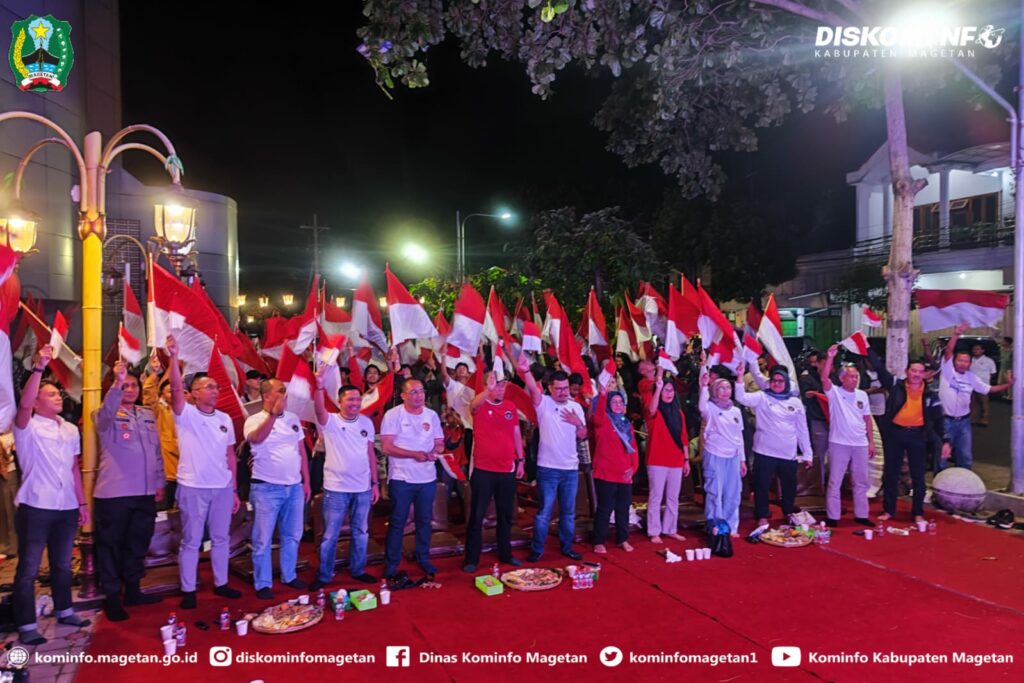 Dukungan kepada timnas Indonesia pada laga kualifikasi Piala Dunia 2026 terus terasa, tak terkecuali di Kabupaten Magetan. Pemerintah Kabupaten Magetan kembali menggelar acara Nonton Bareng (Nobar) pertandingan Kualifikasi Piala Dunia 2026 yang bertempat di Halaman Selatan Pasar Baru Magetan, selasa (10/6).