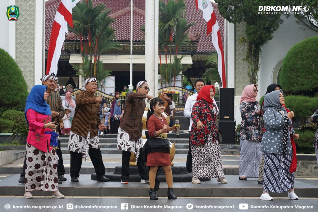 Bupati Magetan, Hj. Nanik Endang Rusminiarti, M.Pd., dalam sambutannya menyatakan “Kegiatan ini sangat luar biasa, terima kasih kepada Dinas Pendidikan Pemuda dan Olah Raga, dan bapak ibu guru yang telah menampilkan tarian massal ini, apresiasi dan penghargaan setinggi-tinggi, apresiasi juga disampaikan kepada anak-anak yang telah menampilkan beberapa tampilan dengan bagus dan semangat, semoga dengan kegiatan seperti ini pendidikan di Kabupaten Magetan semakin maju dan semakin jaya”.