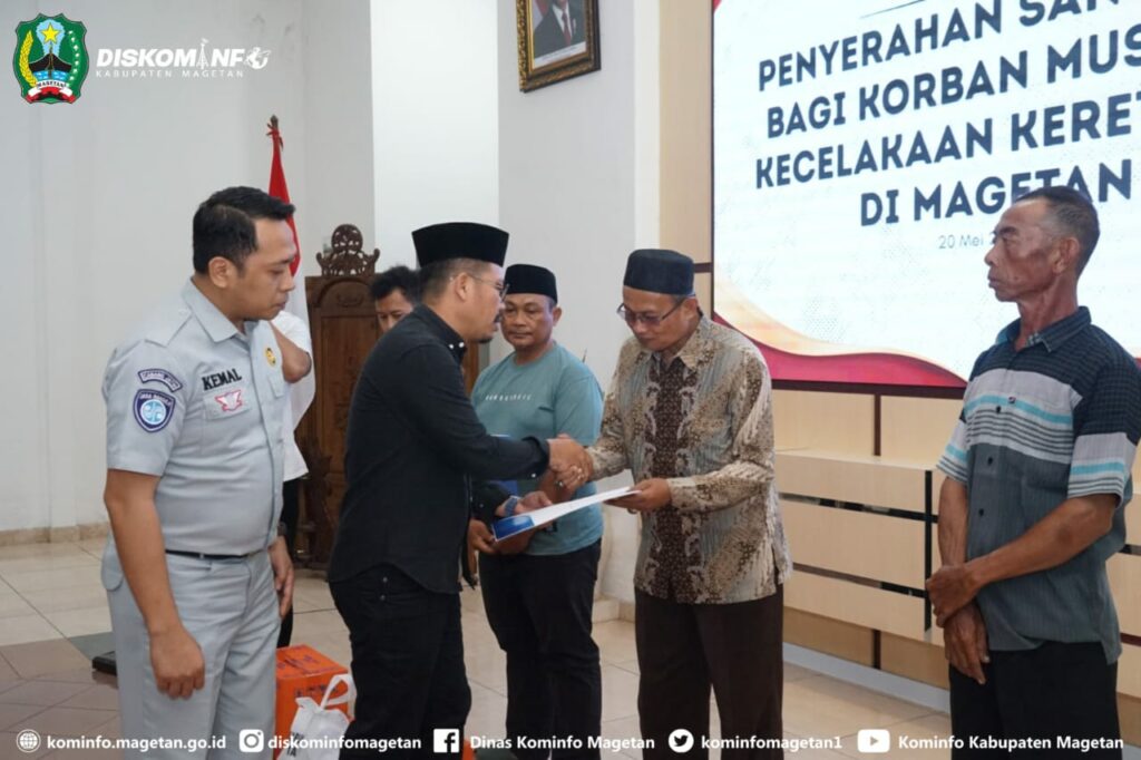 Segenap Forkopimda di kesempatan ini menyatakan turut berbelasungkawa yang dalam kepada empat keluarga korban meninggal dunia. Keluarga almarhum Totok Hermanton, Rezyka Nadya Maharani Putri, Rama Zainaul Fathurahman dan Hariono menerima santunan dari Jasa Raharja sekaligus taliasih dari Pemkab Magetan
