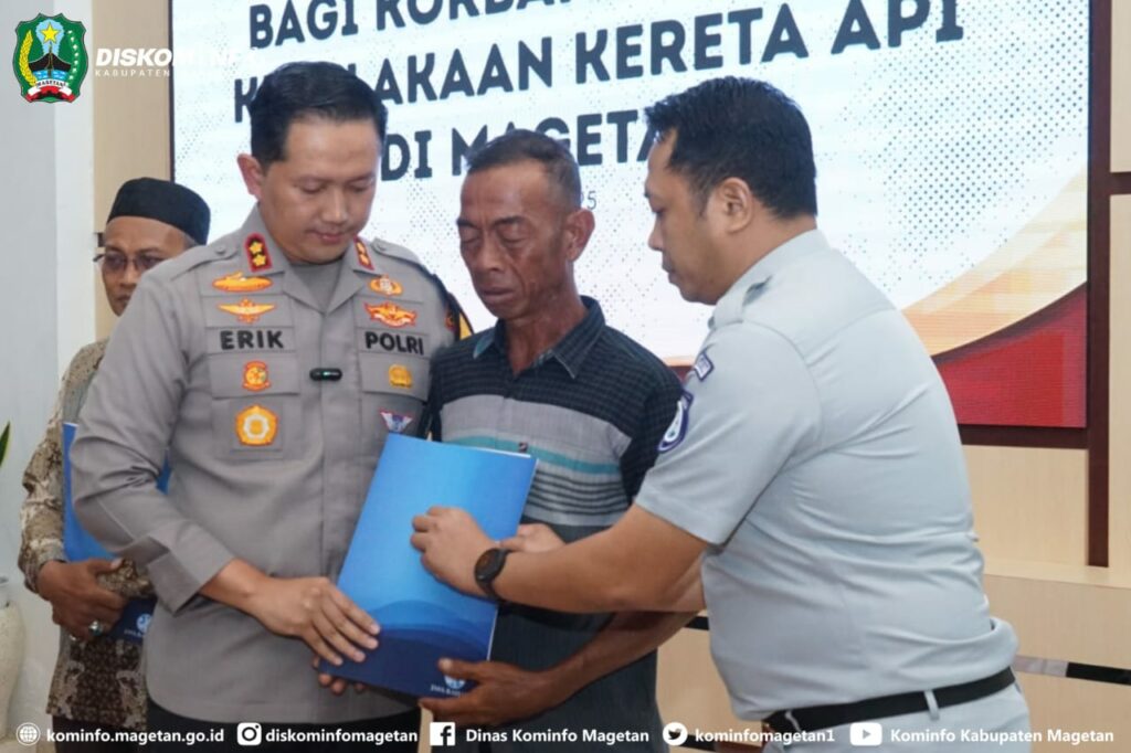 Pj. Bupati, Nizhamul, S.E, M.M., menyatakan “Musibah diluar kendali manusia, dan datangnya membawa kesedihan. Kejadian ini mengakibatkan 4 orang meninggal dunia dan 5 luka-luka. Disampaikan rasa duka dan turut berbelasungkawa yang mendalam atas musibah kemarin. Semoga ketabahan dan keikhlasan keluarga korban. Terima kasih Polres Magetan dan Jasa raharja yang telah menangani dan memberi santunan. Musibah menjadi titik perubahan terutama dalam keselamatan kereta api. Santunan tidak akan menggantikan rasa kehilangan terhadap orang yang dicintai, namun semoga sedikit meringankan beban keluarga yang ditinggalkan.” ungkap Pj Bupati.
