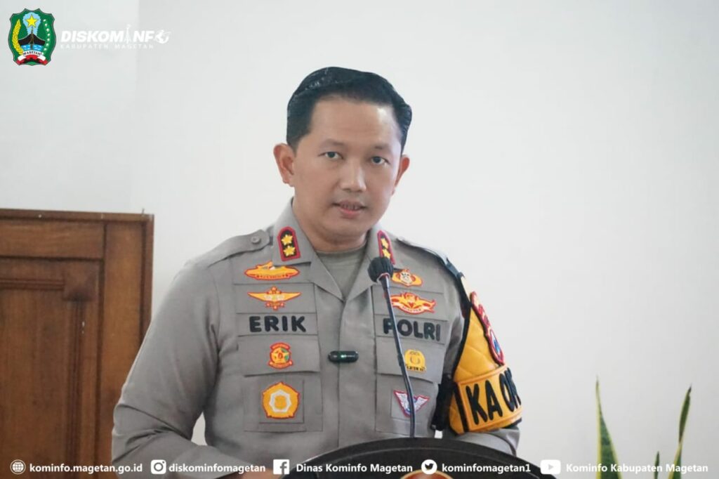 Setelah mengajak seluruh hadirin untuk turut mendoakan arwah korban, Kapolres Magetan, AKBP Raden Erik Bangun Prakasa S.H, S.I.K., M.M, dalam sambutannya menyatakan, “Musibah tidak ada yang tahu tidak ada yang menginginkan. Segenap Forkopimda turut berbela sungkawa dan berdukacita yang mendalam.” ungkap Kapolres.