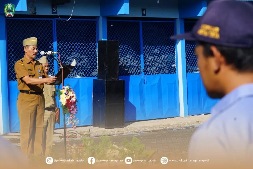 Pj. Sekretaris Daerah Kabupaten Magetan Winarto saat membacakan sambutan Pj Bupati Magetan Nizhamul menyampaikan, PDAM Lawu Tirta harus mampu bekerja dengan dedikasi, profesional dan memiliki kepedulian terhadap kebutuhan masyarakat.