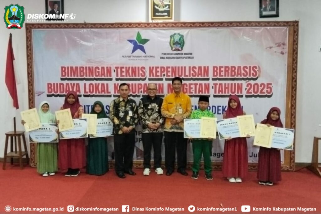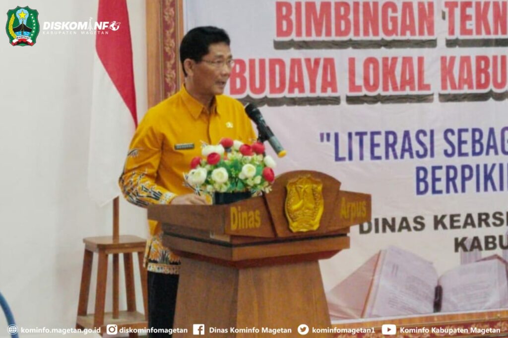 Literasi sebagai salah satu unsur penting dalam kemajuan suatu bangsa sudah semestinya dijadikan sebagai salah satu skala prioritas pembangunan Nasional. Senada dengan hal tersebut Dinas Kearsipan hari ini gelar Bimbingan Teknis Kepenulisan Berbasis Budaya Lokal dengan tema “Literasi sebagai fondasi kemerdekaan berpikir dan berinovasi”. Bimtek ini dilaksanakan di Graha Pusat Literasi Kabupaten Magetan, dan dihadiri 100 peserta dari guru, pustakawan, penulis, penggiat literasi yang tergabung dalam berbagai komunitas, Kamis (24/7/25).