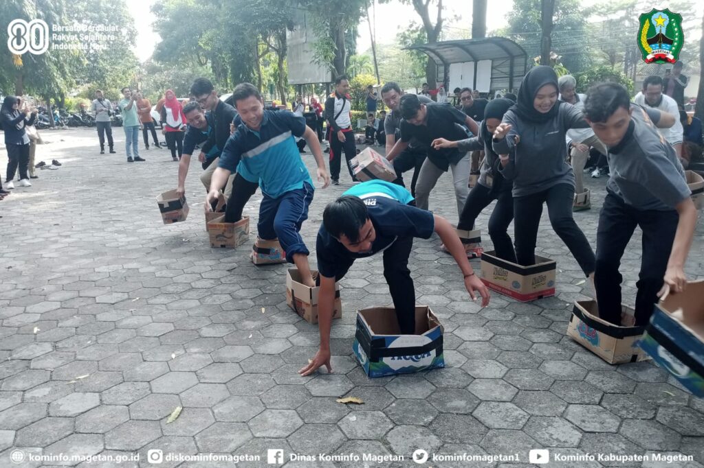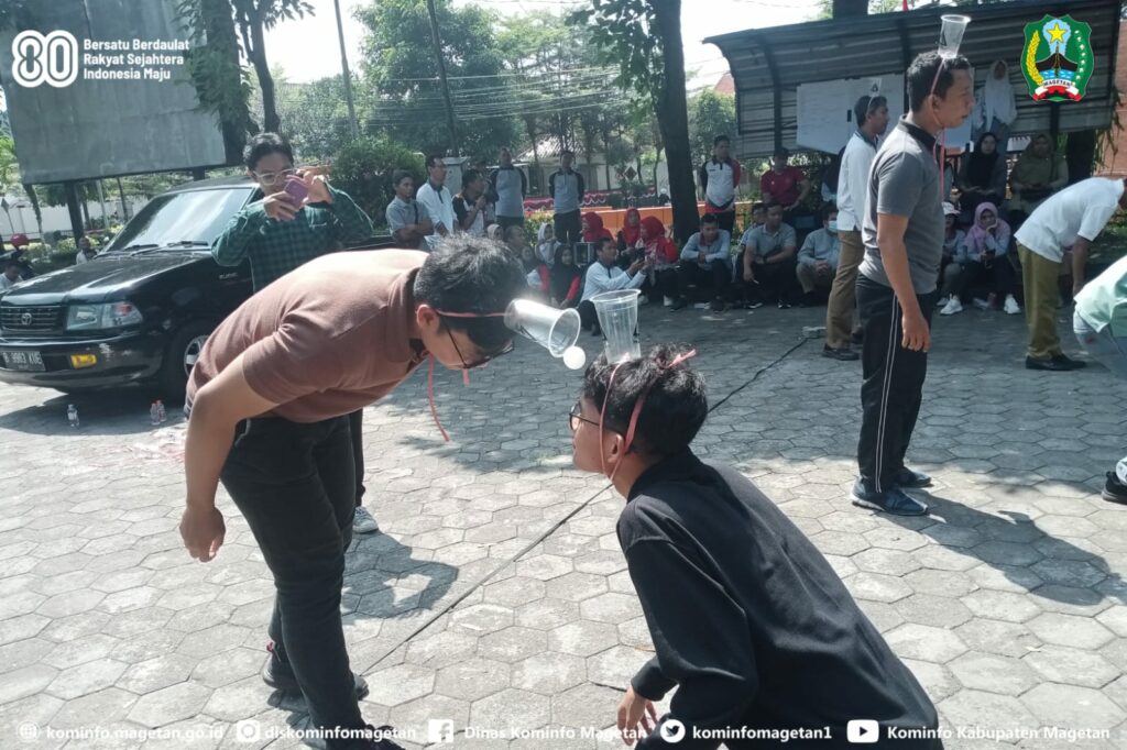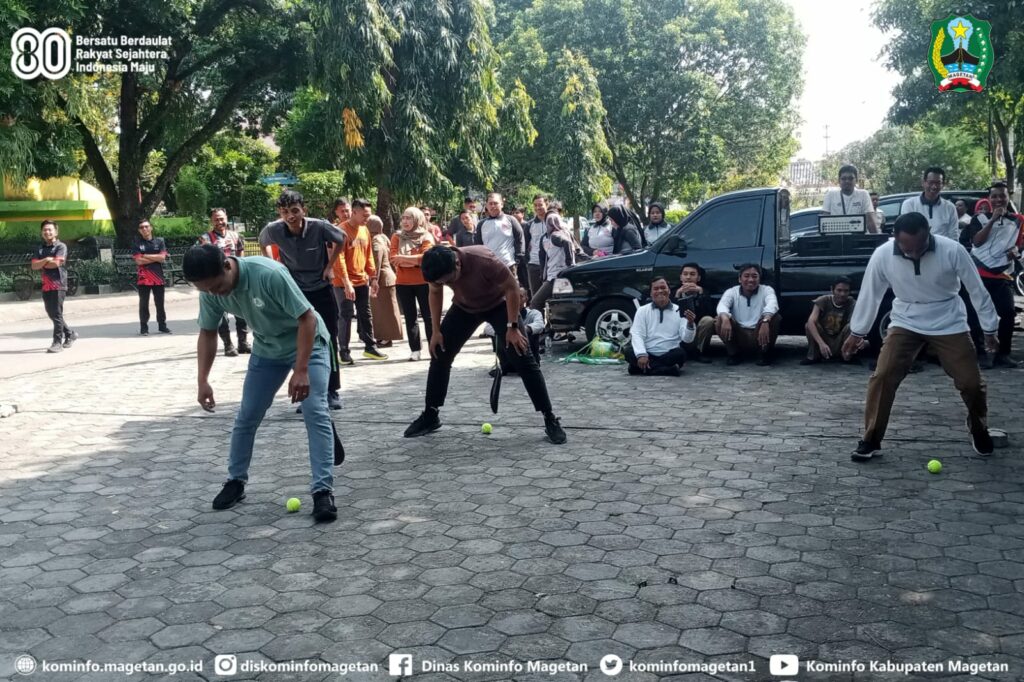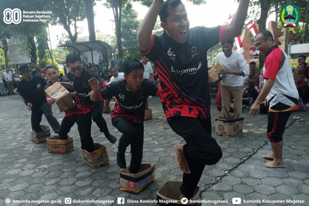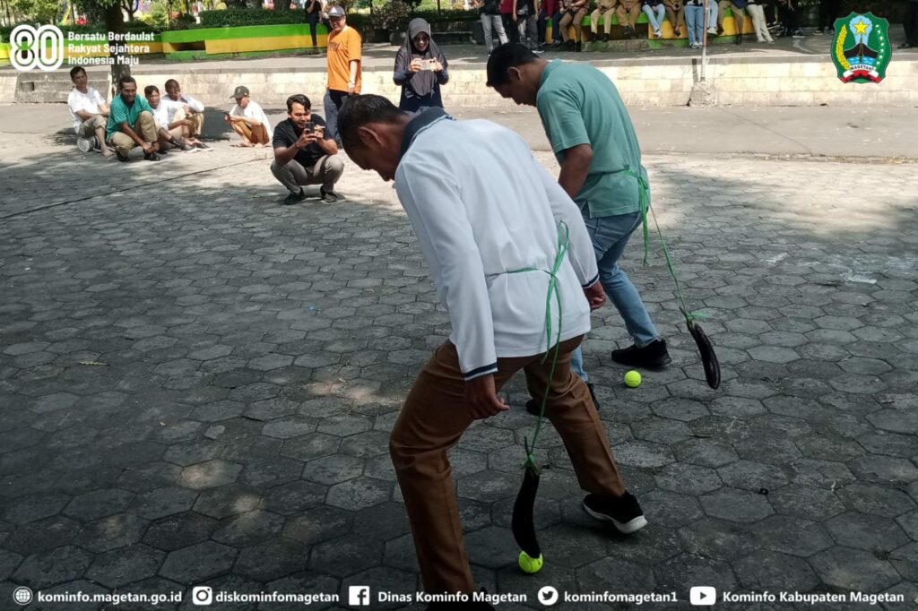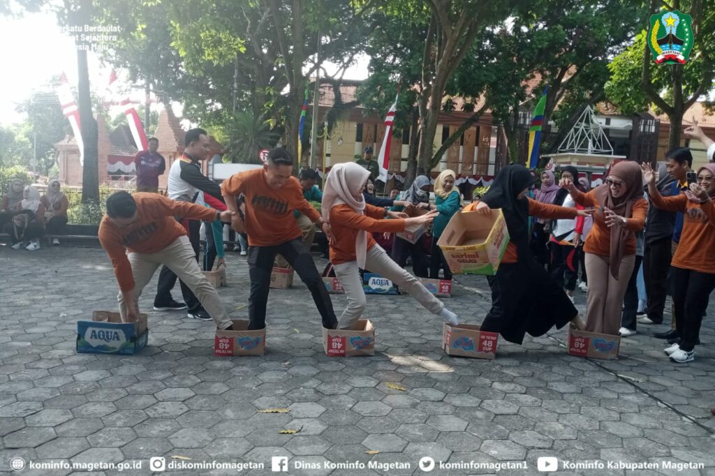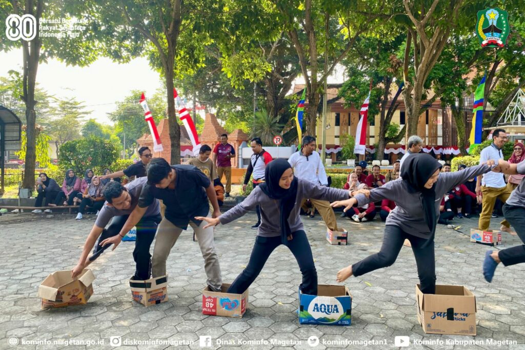 Kemeriahan peringatan Hari Ulang Tahun ke-80 Kemerdekaan Republik Indonesia, di lingkungan Pemerintah Kabupaten Magetan semakin semarak, melalui Dinas Pemberdayaan Masyarakat dan Desa digelar Lomba Permainan Rakyat Lingkup Instansi.