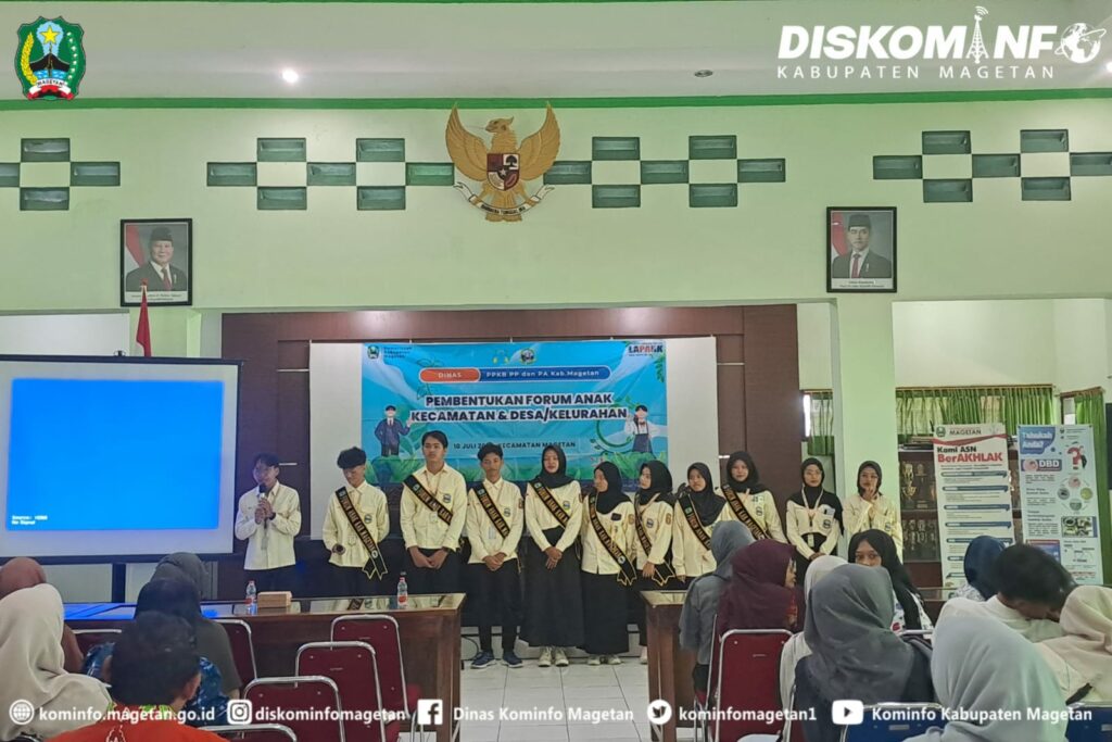 Magetan dengan membentuk forum anak kecamatan dan desa/kelurahan bertempat di Kecamatan Ngariboyo. Kamis (10/7/2025), dihadiri Camat Ngariboyo, Polres Magetan, Kemenag Magetan, perwakilan Kecamatan Lembeyan, serta anak-anak yang tergabung dalam forum anak Magetan.