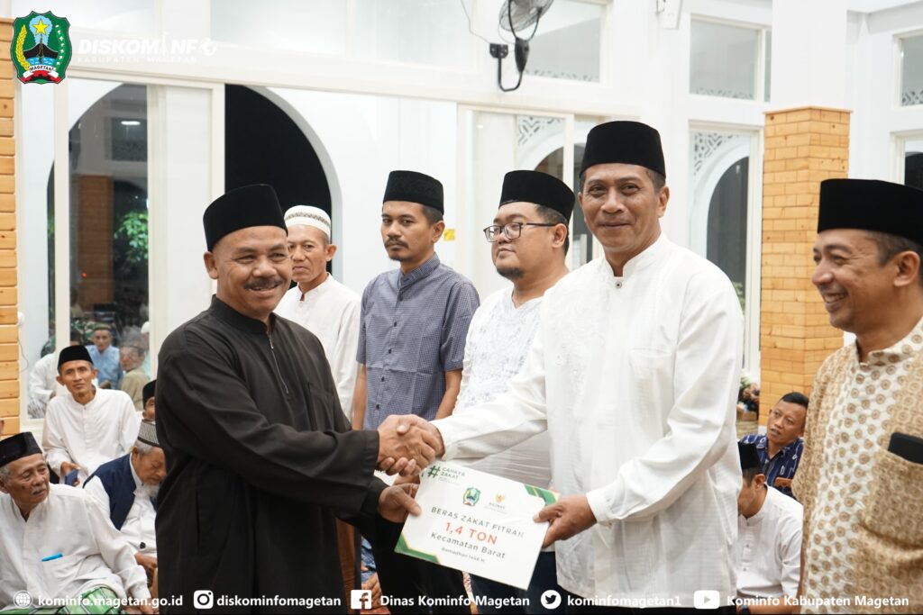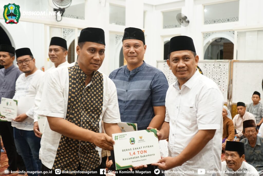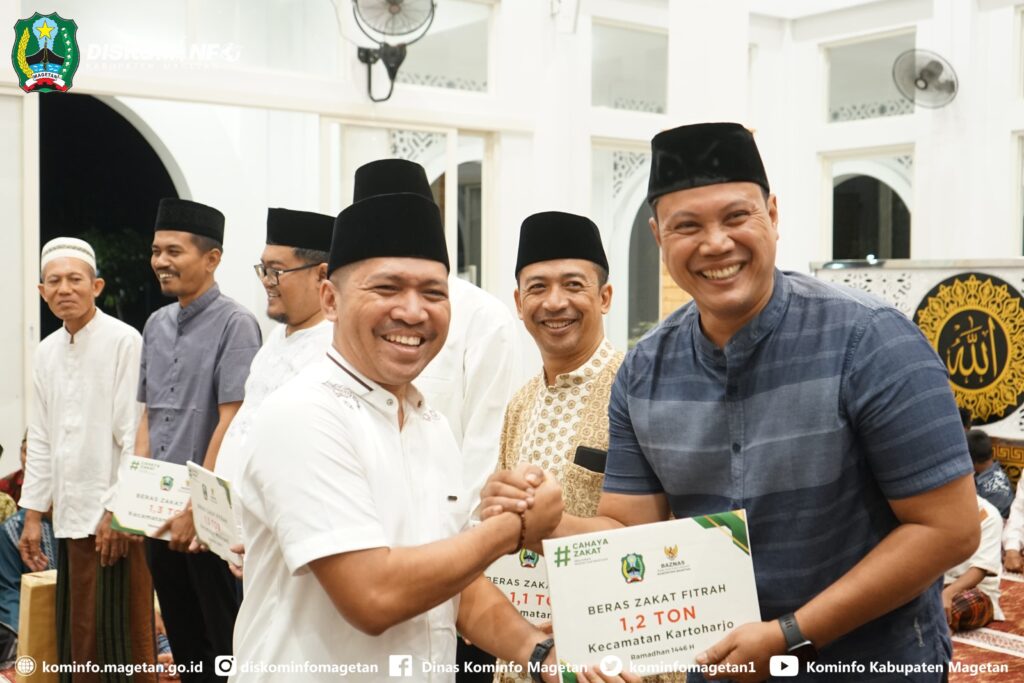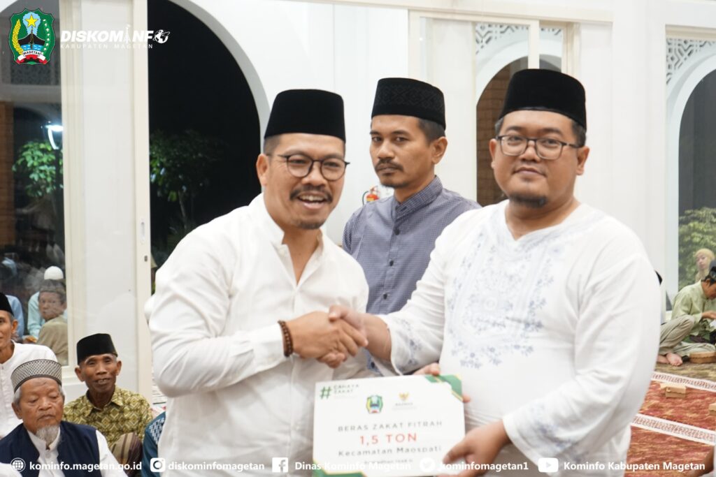 Dalam kesempatan tersebut diserahkan tali asih berupa alat shalat dan Al-Quran secara simbolis oleh Pj Bupati Magetan Nizhamul kepada takmir masjid, juga beras zakat dari Baznas Magetan kepada seluruh Camat di eks distrik Maospati.