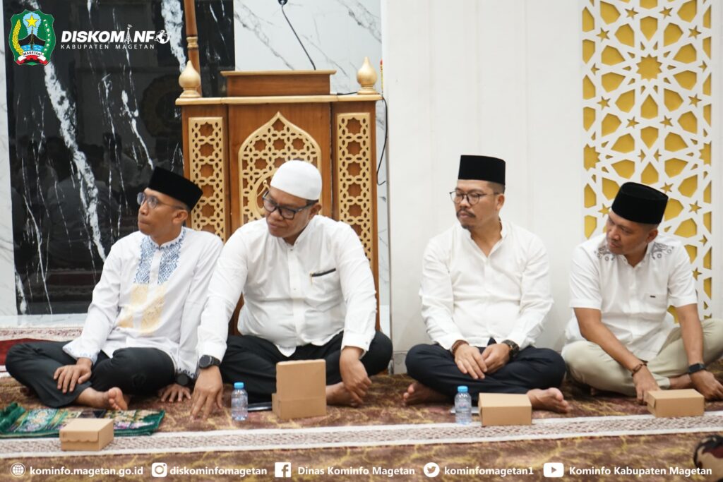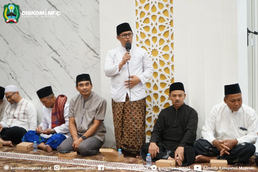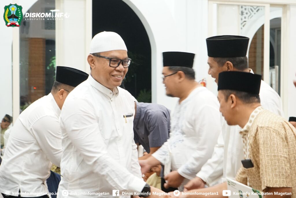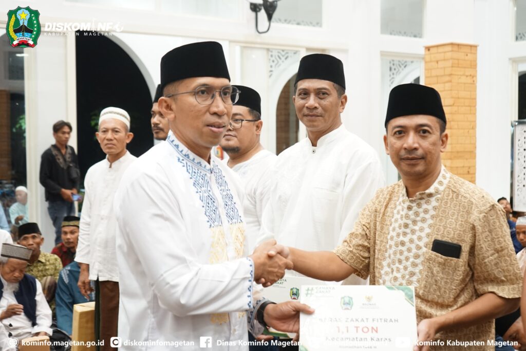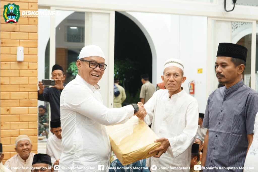 Dalam kesempatan tersebut diserahkan tali asih berupa alat shalat dan Al-Quran secara simbolis oleh Pj Bupati Magetan Nizhamul kepada takmir masjid, juga beras zakat dari Baznas Magetan kepada seluruh Camat di eks distrik Maospati.