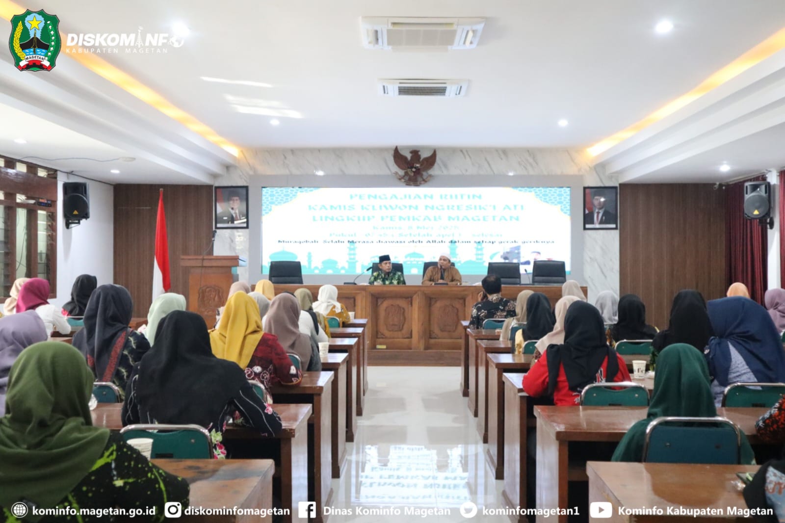 Pemerintah Kabupaten Magetan kembali menggelar pengajian rutin bertajuk “Kamis Kliwon Ngresiki Ati” pada Kamis pagi, 8 Mei 2025, bertempat di Ruang Rapat Ki Mageti.