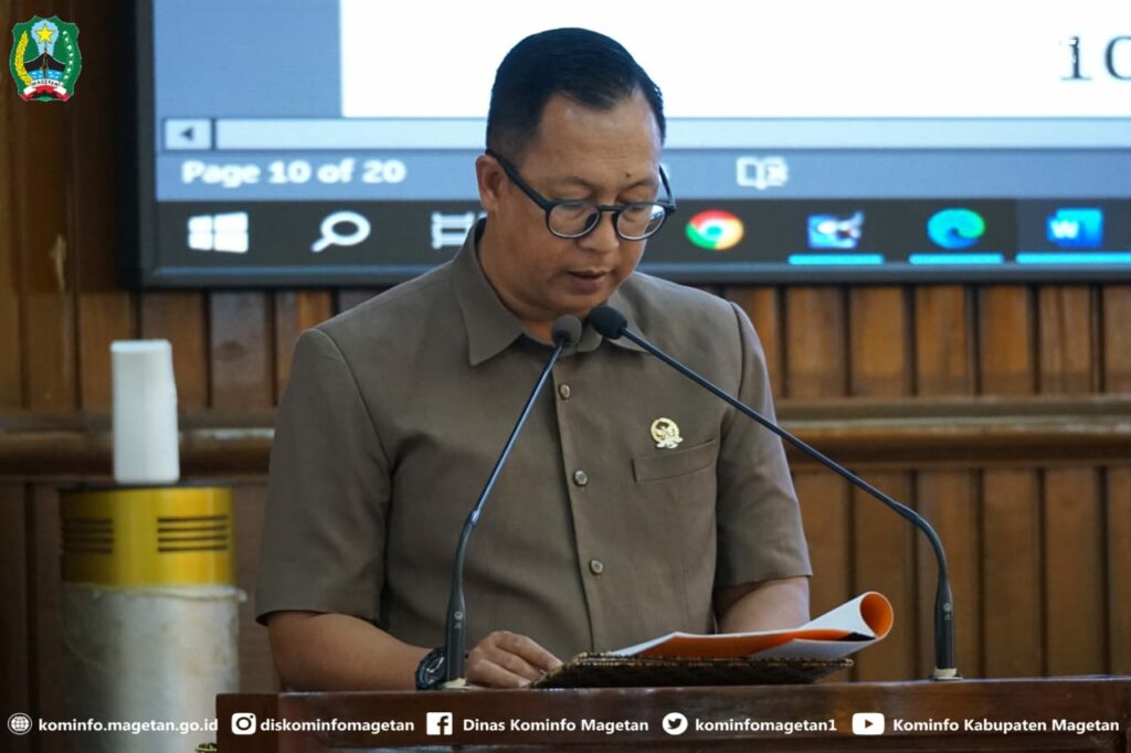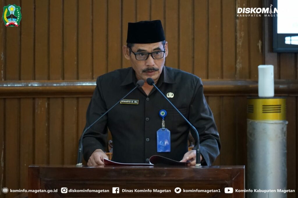 Selanjutnya Pj. Sekdakab Magetan Winarto, membacakan pendapat akhir Bupati Pj. Bupati Magetan, selama proses pembahasan mulai dari tahap awal sampai akhir, penyempurnaan redaksional dan rekomendasi terhadap materi muatannya serta harapan yang disampaikan dalam pandangan umum fraksi-fraksi DPRD, maupun melalui rapat pembahasan antara badan pembentukan perda DPRD dengan tim pembahasan raperda pemerintah daerah bersama perangkat daerah pemrakarsa, “Lima perda ini akan dijadikan rujukan dan ditindaklanjuti pada pelaksanaan pembangunan dimasa mendatang oleh pemerintah Kabupaten Magetan,” jelasnya.(Diskominfo:wan / fa2 / IKP1)