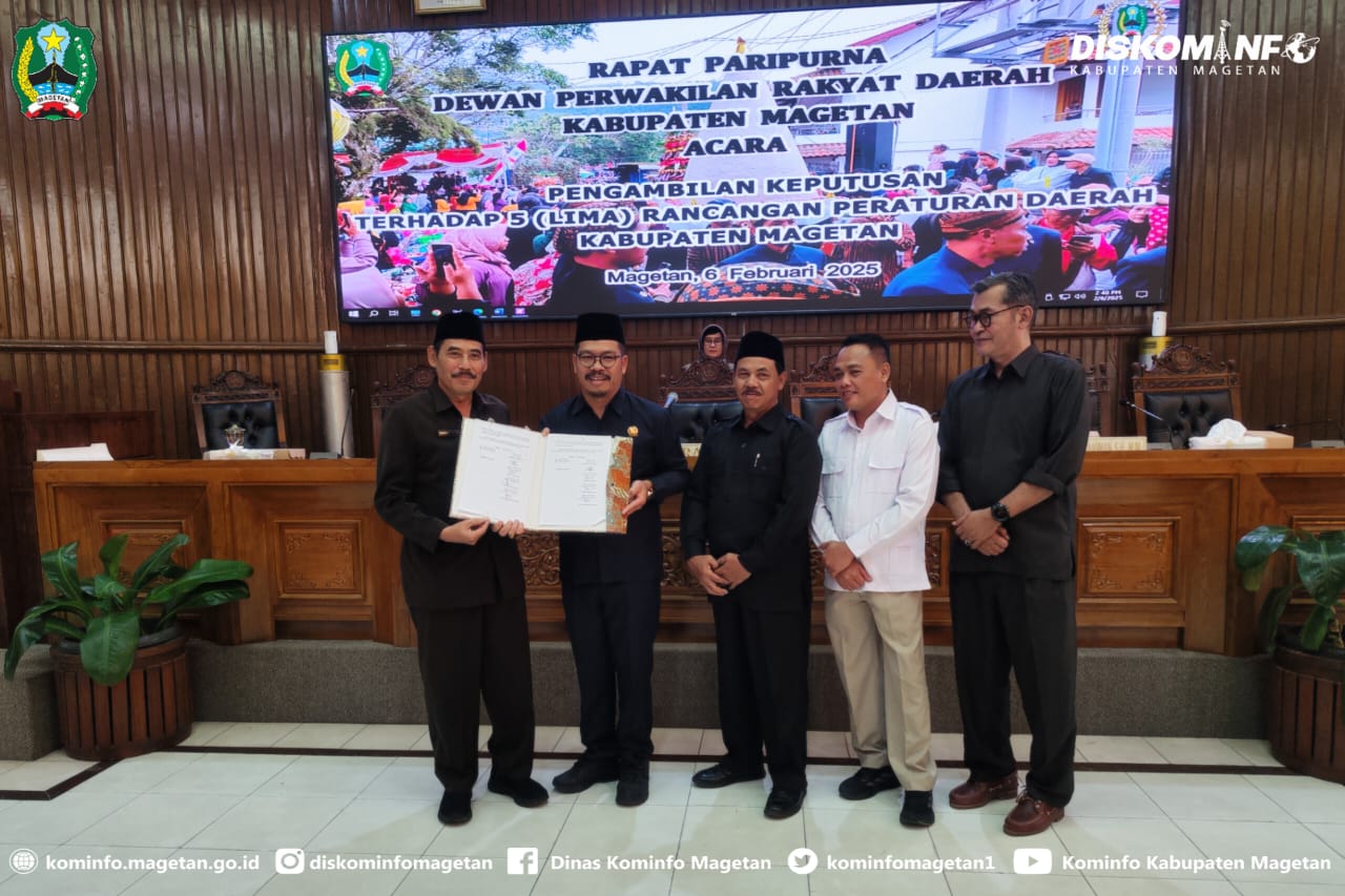 Ketua DPRD Magetan Suratno menyampaikan, pembahasan terhadap 5 (lima) Rancangan Peraturan Daerah Kabupaten Magetan, telah melalui berbagai tahapan pembahasan mulai dari penjelasan bupati, sampai dengan tahapan yang terakhir pengambilan keputusan pada hari ini.