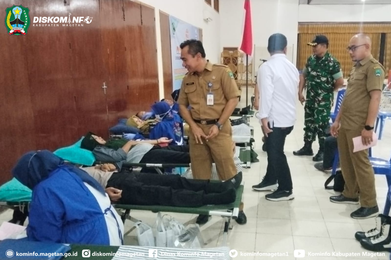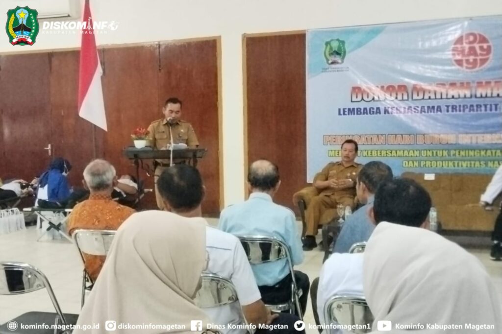 Dinas Tenaga Kerja Kabupaten Magetan bekerjasama dengan stakeholder terkait mengadakan kegiatan Donor darah . Mengusung Tema Hari Buruh Tahun 2025, “Merajut Kebersamaan” sebagai semangat untuk mendorong keseimbangan antara kesejahteraan pekerja dan peningkatan produktivitas nasional, kegiatan ini digelar.