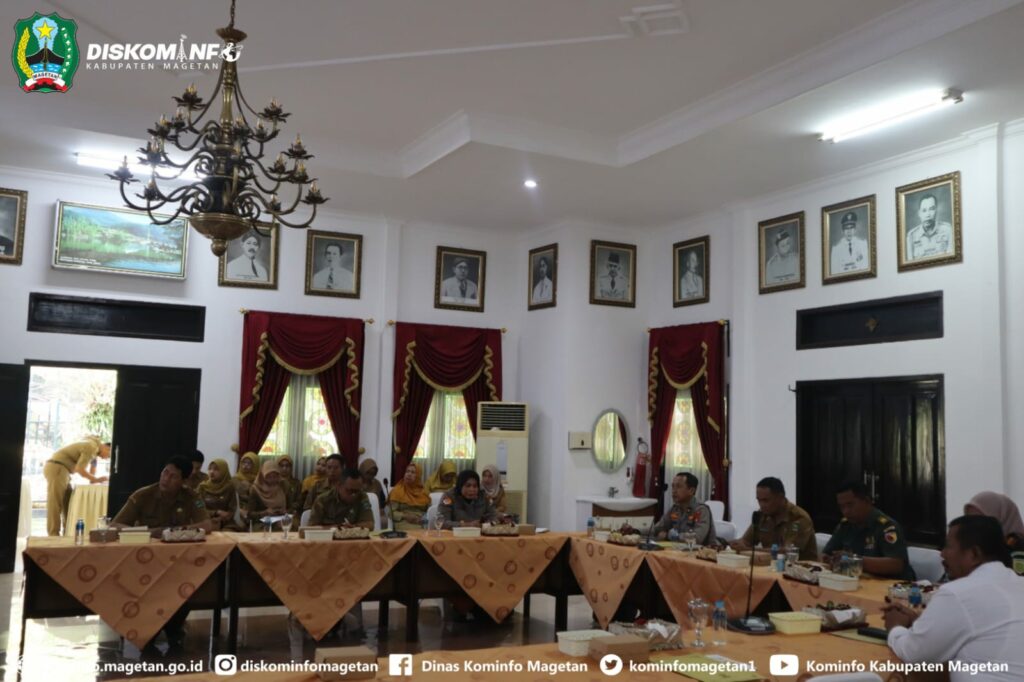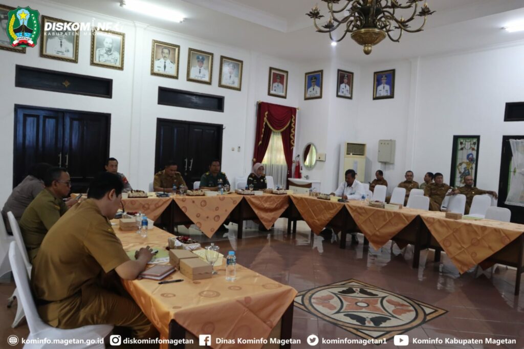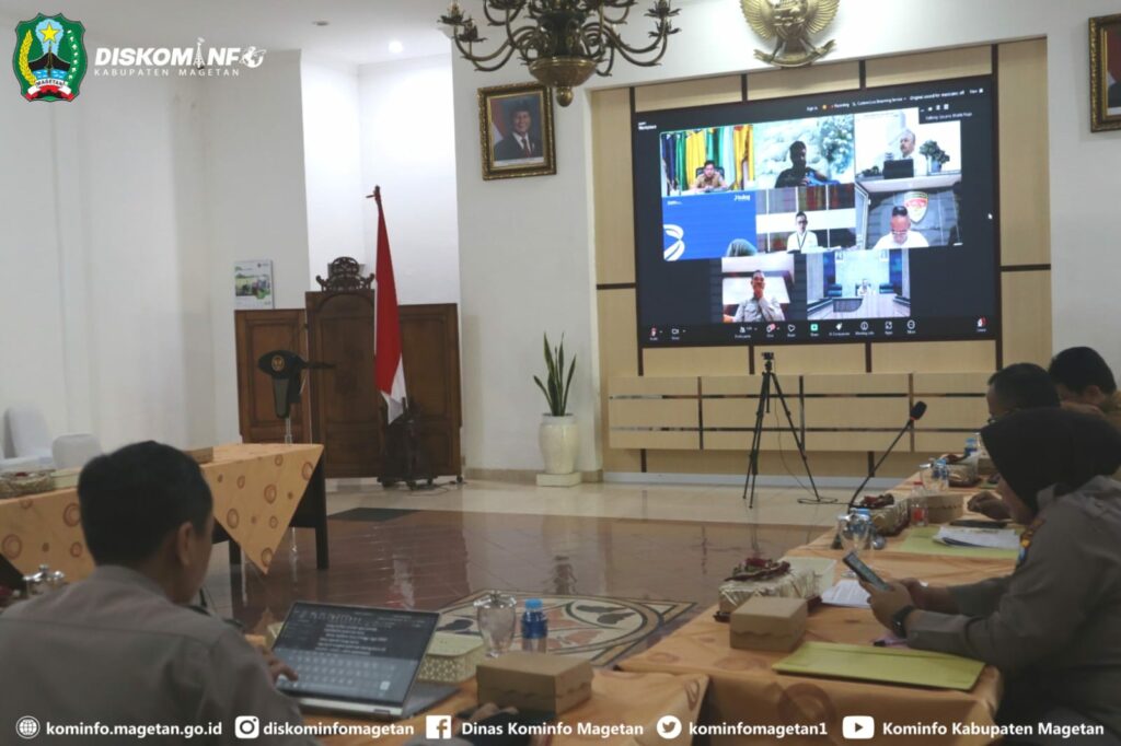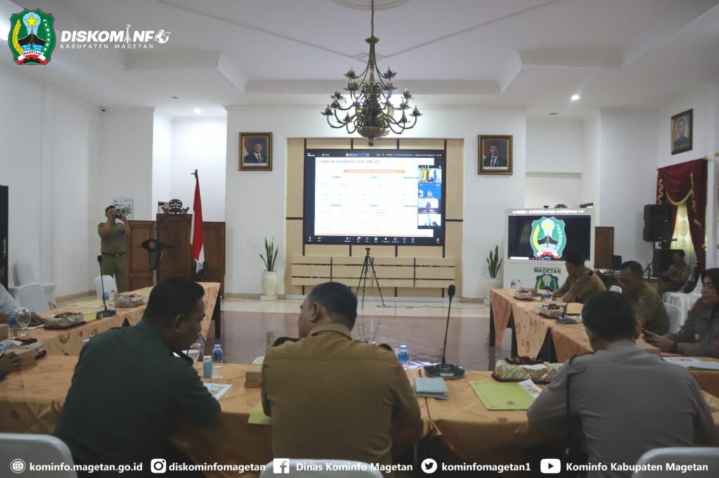 Kementerian Dalam Negeri (Kemendagri) hari ini kembali menggelar Rapat Koordinasi (Rakor) Pengendalian Inflasi Tahun 2025 secara daring. Rapat yang dipimpin langsung oleh Sekretaris Jenderal Kemendagri, Tomsi Tohir dan diikuti oleh seluruh Tim Pengendalian Inflasi Daerah, kepala daerah, serta perwakilan lintas sektor dari berbagai kabupaten/kota di Indonesia. Untuk Kabupaten Magetan rakor kali ini diikuti oleh Asisten Bidang Pemerintahan dan Kesejahteraan Rakyat, dan OPD terkait dari Ruang Jamuan PSG. Senin,(5/5/25)