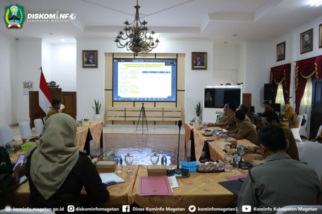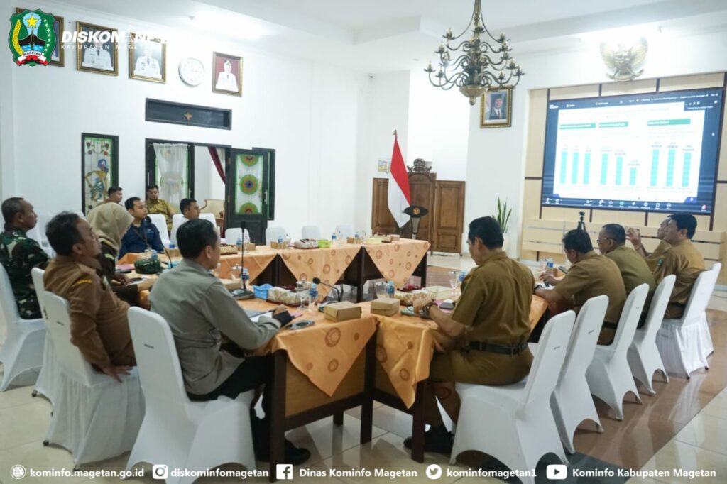 Pemerintah Kabupaten Magetan kembali ikuti Rapat Koordinasi Inflasi bersama Kementerian Dalam Negeri Republik Indonesia secara online di Ruang Jamuan Pendopo Surya Graha.