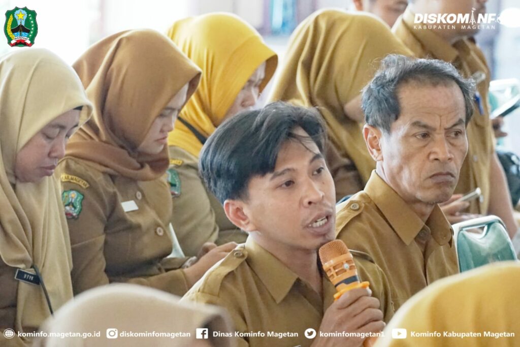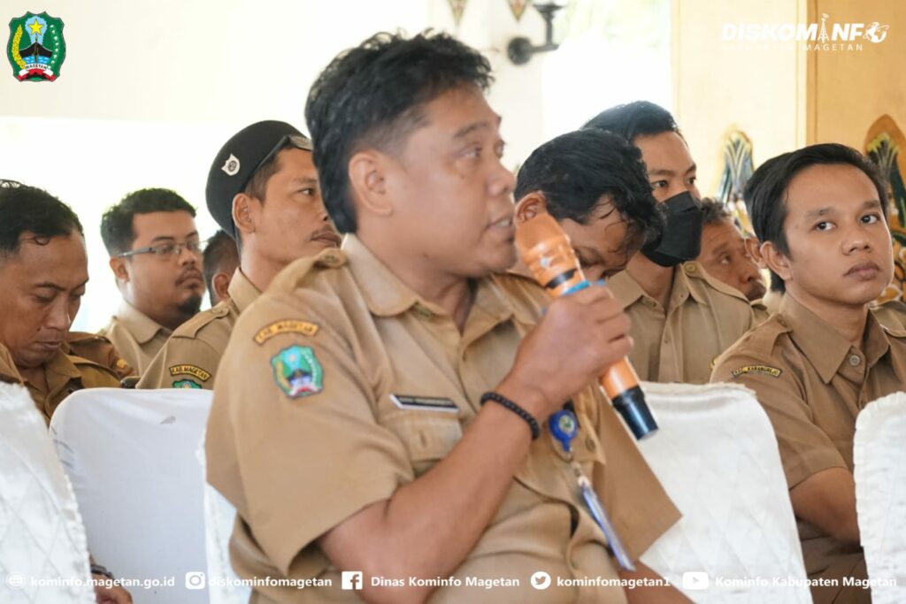 Kepala Diskominfo Magetan Cahaya Wijaya menyampaikan, “Melalui KIM diharapkan terbangun ketahanan informasi di masyarakat,” tegasnya. Masyarakat secara mandiri dapat membangun sistem informasi komunal di lingkungannya dengan potensi kearifan lokal, sehingga masyarakat dapat memberi, mengolah, menerima dan menyebarkan informasi yang berguna bagi peningkatan pengetahuan maupun potensi desa.
