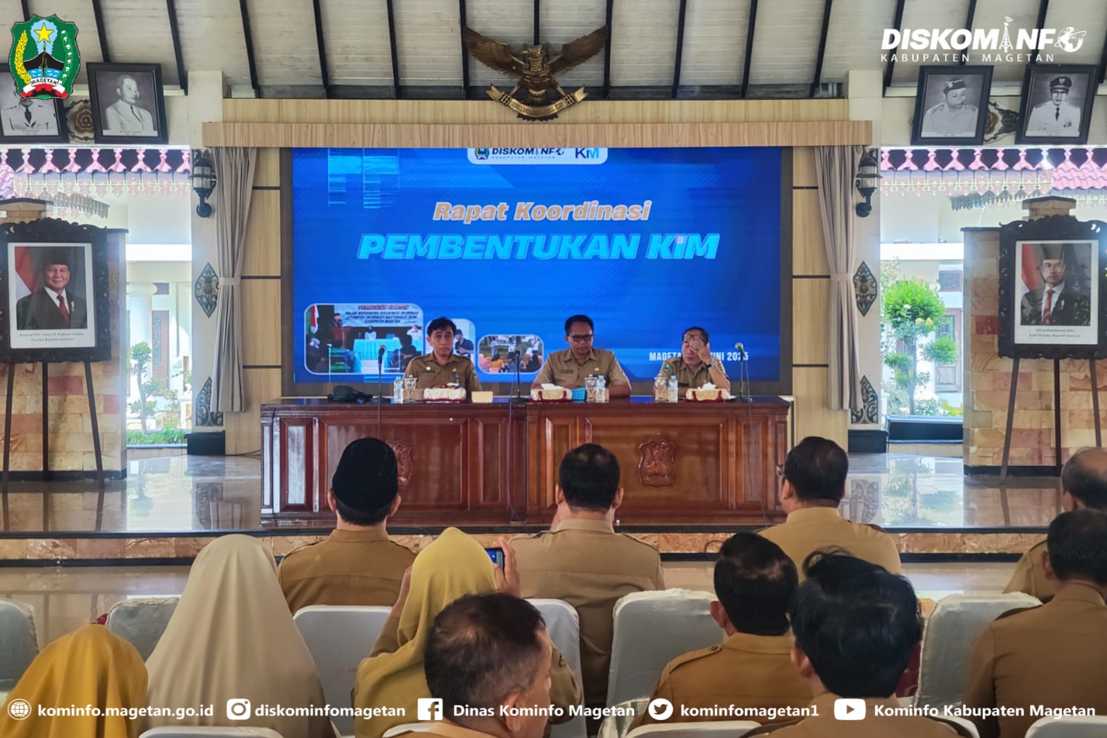 KIM (Kelompok Informasi Masyarakat) merupakan mitra strategis pemerintah daerah dalam diseminasi informasi kepada masyarakat. KIM dibentuk oleh, dari, dan untuk masyarakat yang melakukan pengelolaan dan diseminasi informasi dalam rangka peningkatan pemberdayaan masyarakat secara mandiri dan kreatif. Acara rakor ini diselenggarakan di Pendapa Surya Graha Magetan, yang dihadiri Plh. Sekdakab Magetan, Dinas PMD, kecamatan, desa, kelurahan se-Magetan. Selasa (24/6/2025).