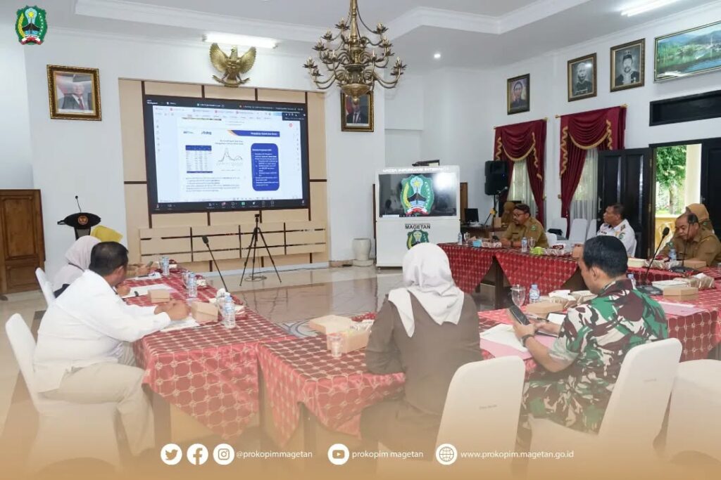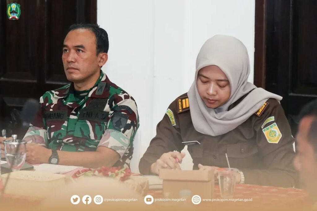 Hadir secara luring di Ruang Jamuan Pendapa Surya Graha Forkopimda Magetan dan OPD serta stakeholder terkait.(Prokopim/adm/ahm)