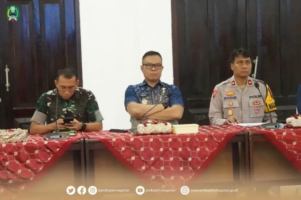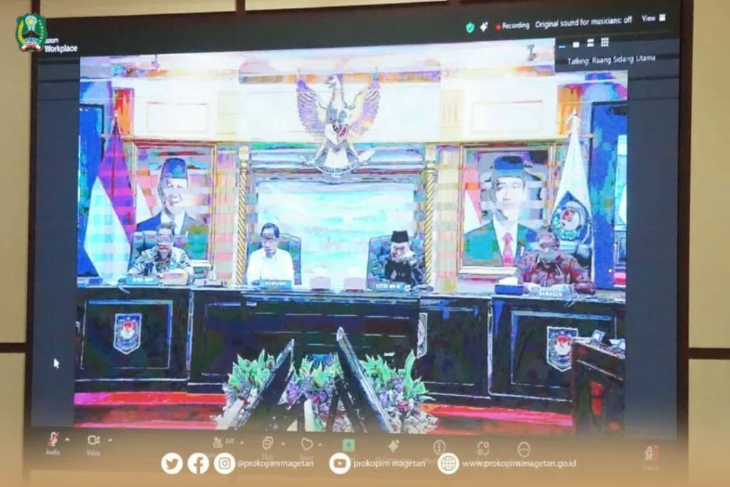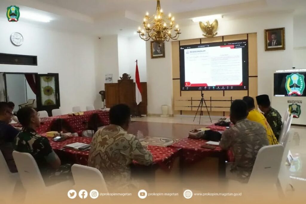 Untuk mewujudkan pelaksanaan PSU yang aman dan sukses tentunya tahapan demi tahapan sudah dilakukan. Guna mematangkan pelaksanaan PSU, pada hari ini Jumat, 21 Maret 2025 bertempat di Ruang Jamuan Pendapa Surya Graha dilaksanakan rapat koordinasi secara virtual antara Kementerian Dalam Negeri dengan Pemerintah Kabupaten Magetan serta penyelenggara Pilkada di Magetan.