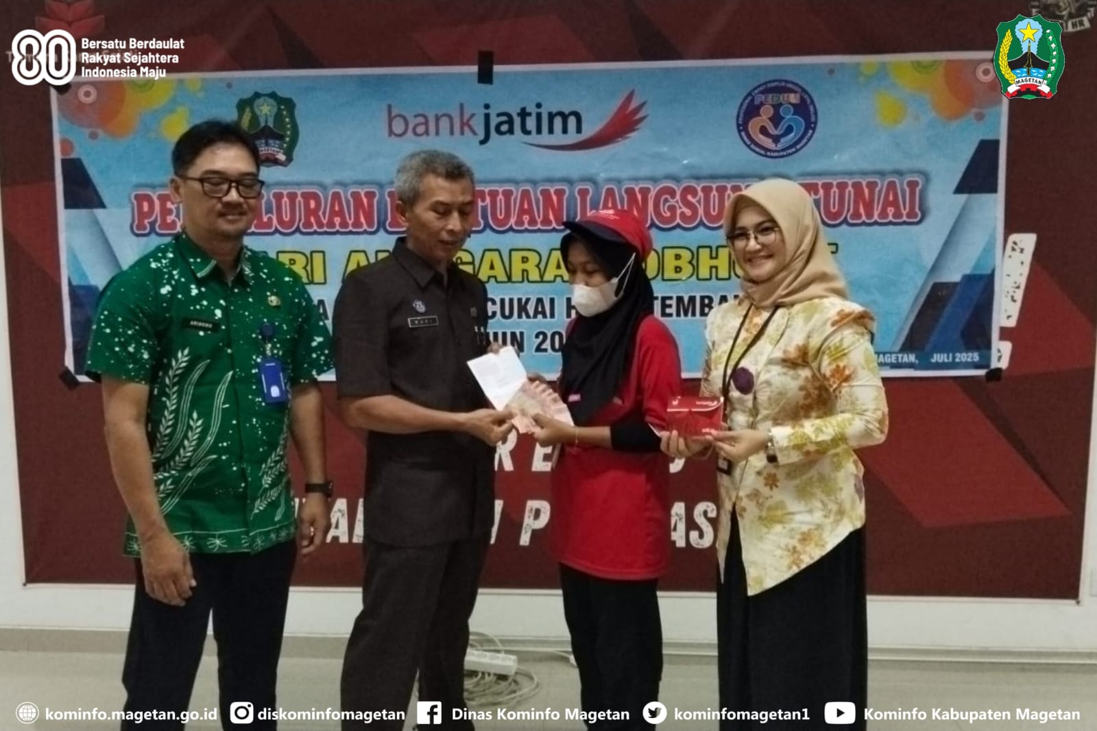 Pemerintah Kabupaten Magetan melalui Dinas Sosial menyalurkan Bantuan Langsung Tunai (BLT) Dana Bagi Hasil Cukai Hasil Tembakau (DBHCHT) bagi pekerja/buruh pabrik rokok yang memiliki KTP Kabupaten Magetan