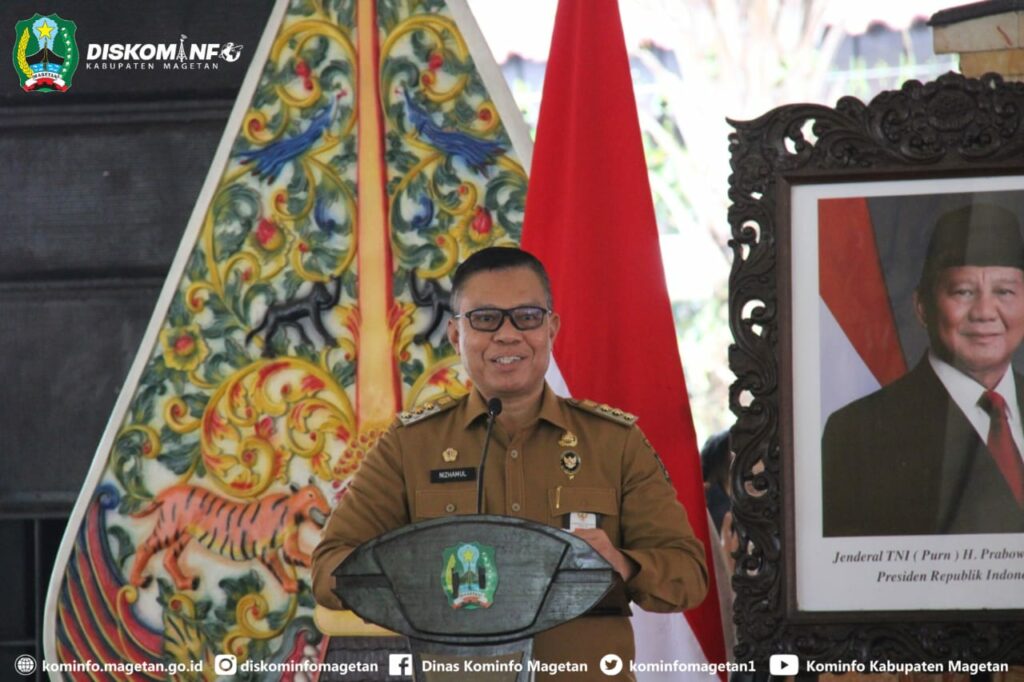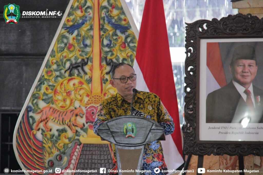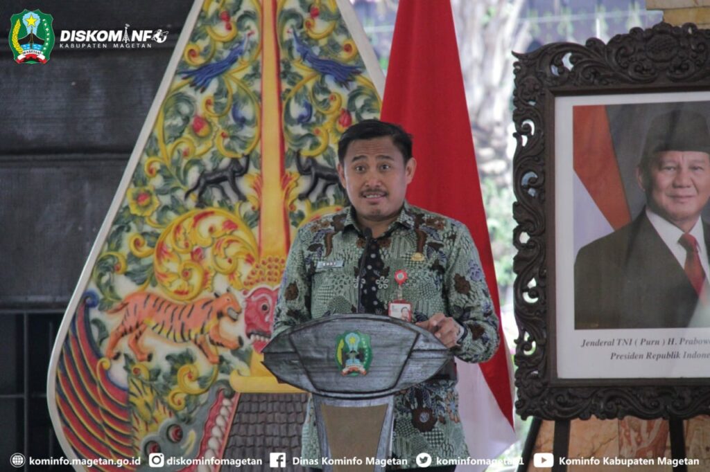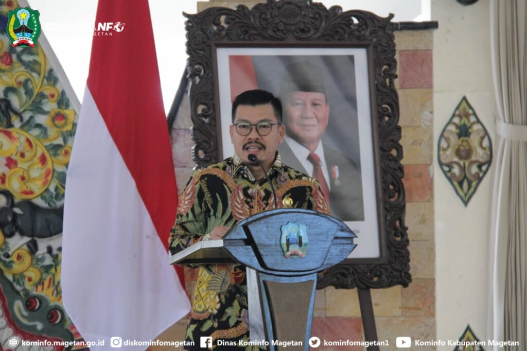“Dengan melihat data bahwa jumlah penduduk miskin (penduduk dengan pengeluaran per kapita per bulan di bawah garis kemiskinan) di Kabupaten Magetan pada bulan Maret 2024 mencapai 59,51 ribu jiwa. Jumlah ini berkurang sebesar 2,98 ribu jiwa, bila dibandingkan dengan kondisi bulan Maret 2023 sebesar 62,49 ribu jiwa, persentase penduduk miskin Kabupaten Magetan yang mengalami penurunan dari 9,80 persen pada Maret 2023 menjadi sebesar 9,32 persen pada Maret 2024, sedang indeks pembangunan manusia indonesia (IPM) di Magetan tahun 2024 mencapai 76,77, meningkat 0,47 poin (0,62 persen) dibandingkan tahun 2023 sebesar (76,30). Dari data tersebut diharapkan pembangunan di Kabupaten Magetan yang akan datang juga harus bisa lebih baik lagi, maju dan sejahtera.” paparnya