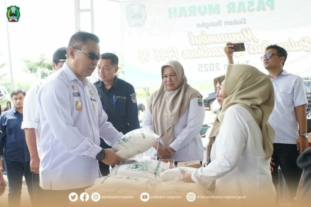 Pj Bupati Magetan Nizhamul menyampaikan bahwa pasar murah ini digelar untuk memenuhi kebutuhan warga menjelang puasa ramadan